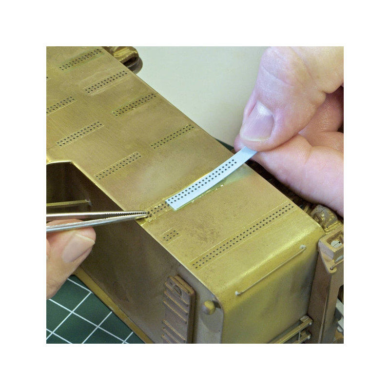 Ajoutez des têtes de rivets en relief (3D) et autres détails à n'importe quelle surface… facilement, rapidement et à moindre coût ! Des décalcomanies de haute qualité pour un rendu réaliste. Gamme de décalcomanies avec rivets 3D en relief, grilles, persiennes, etc. Application facile grâce aux instructions claires et concises fournies. Convient à de nombreuses surfaces, y compris le métal et le plastique. Appliquez-les sur les côtés, les extrémités, les planchers et les toits de vos modèles réduits de trains, de véhicules militaires, de bâtiments, de ponts, de bateaux, d'avions, et même comme boutons pour vos figurines.