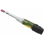 Pour outils à queue de 6 mm. Tête droite et col à broche mince long de 75 mm, en fonte d'aluminium injecté. Haute performance pour un format compact: nettement plus légère (800 g) que les ponceuses droites classiques. Logement de l'outil dans un mors de serrage ER11 (6 mm inclus). Le matériel livré inclut une meule tige K 36 au corindon blanc, une batterie lithiumions Li/A2 et un chargeur LG/A2. Données techniques: 10,8 V. 2,6 Ah. 7000 - 23 000 tr/min. Longueur 345 mm. Poids 800 g (batterie incluse).