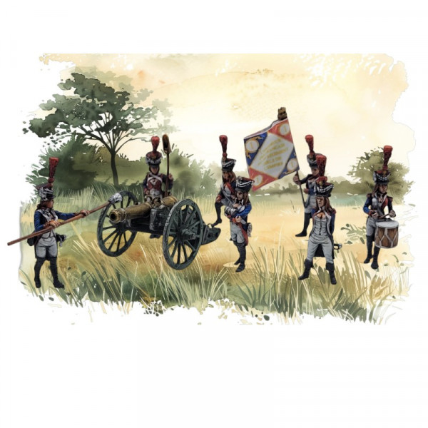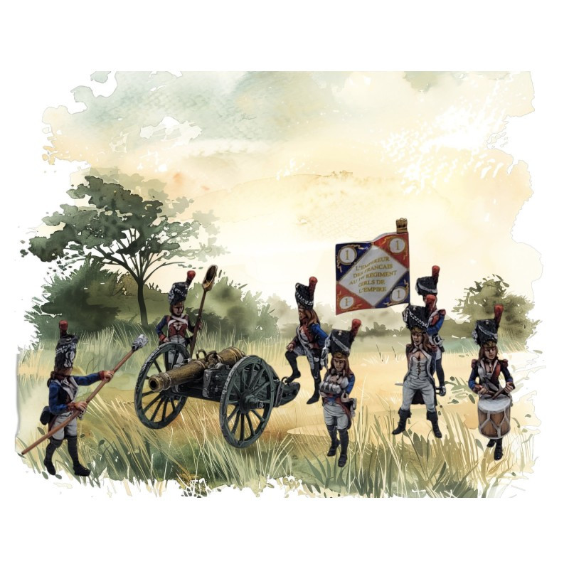 Set de 7 femmes soldats de la garde Napoléonienne avec un canon, peut-être montées avec un shako ou avec le bonnet en ours.