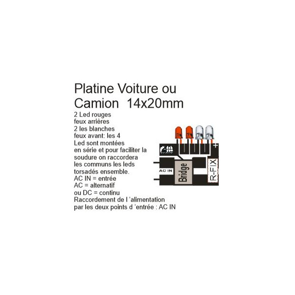 Module d'éclairage de voiture-camion câblé avec 2 leds rouges et 2 blanches