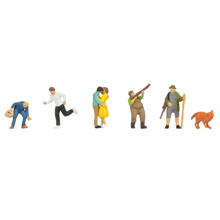 Figurines miniature NOCH, échelle N 1/144, ces figurines détaillées sont peintes à la main, elles reproduisent une scène de vie. Utile pour le décor, diorama, train miniature, modélisme, architecture...