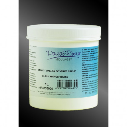Microsphères creuses 1 litre. Incorporées jusqu’à 100% en volume elles permettent de diminuer la densité des résines jusqu’à environ 0,7. Les microspheres peuvent êtres aussi incorporées dans le platre ou le systeme acrylique.