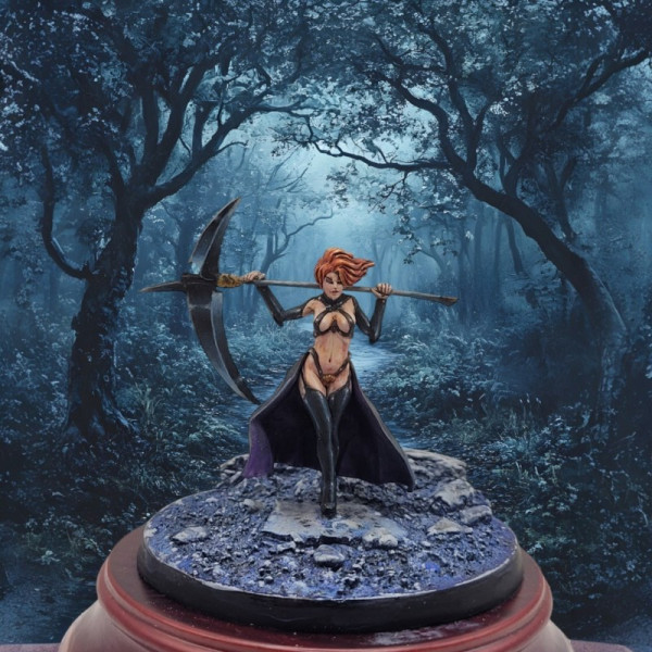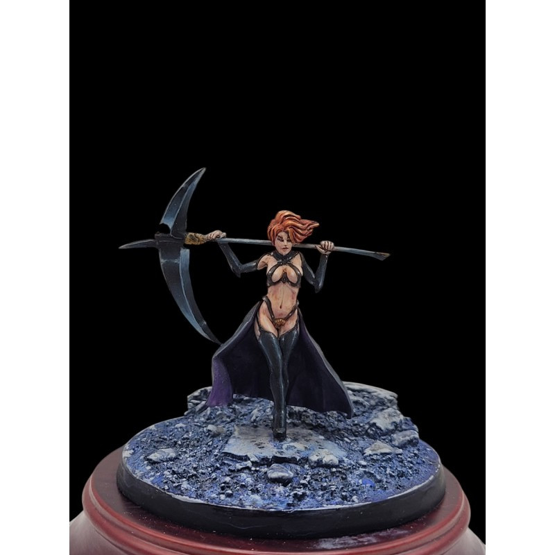 Miss Death représente la mort, très belle lorsqu'elle se présente à vous, et après son passage on découvre sa vrai personnalité. La figurine peut-être montée avec la jupe ou sans jupe. Inclus une diorama 60mm. Echelle : 35mm. Moulage : en résine. Sculptée par : Paolo Fabiani