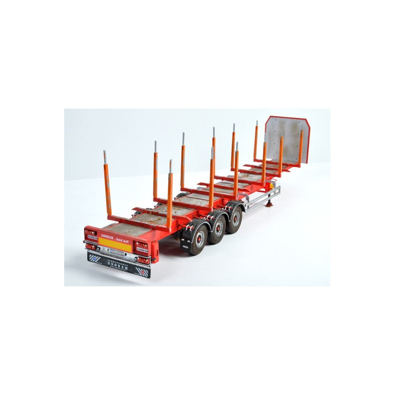 Reproduction fidele et tres detaillee d'une semi-remorque porte-grumes trois essieux GSODAM. Les grumes ne sont pas incluses dans le kit.