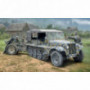 Le tracteur semi-chenille Sd.Kfz 10 Demag D7 a ete utilise en grand nombre par les troupes allemandes pendant la 2eme G.M. sur tous les fronts principaux, de l'invasion de la Pologne a l'Afrique du Nord en passant par la Russie. Conçu comme tracteur de pieces dartillerie legeres, anti-aeriennes et anti-chars, le Demag D7 pouvait egalement transporter huit soldats entierement equipes. Le moteur 6 cylindres Maybach de 4,2 litres positionne a l'avant delivrait 99ch et permettait datteindre la vitesse maximale de 65km/h sur route. Ce vehicule egalement a laise en tout terrain, fiable et polyvalent a ete produit en grand nombre en diverses versions. L'obusier leger Le. IG 18 a ete conçu pour fournir un soutien d'artillerie aux compagnies d'infanterie. Fiable et precis, il etait souvent tracte jusqua la zone doperations par des tracteurs Demag ou Protze,