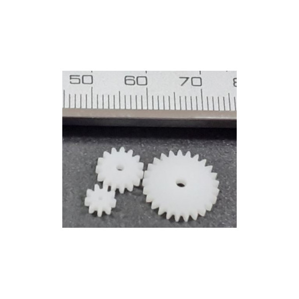 Pignon POM BLANC 9 Dents Module 05 D total 5,5mm Axe 1,0mm Epaisseur 2,0mm