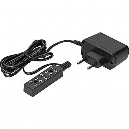 Transfo 3,2VA + 1,2VA, fiche femelle 5 sorties pour 5 ampoules de 3V5 et 3 sorties clignotantes pour ampoules, le générateur est intégré : applications feu de camp, incendie etc ...