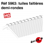 Voici une référence qui sera particulièrement appréciée des modélistes construisant leurs bâtiments ou bien souhaitant améliorer des modèles du commerce. Nous proposons en effet des tuiles faîtières, ici en version tuiles demi rondes, touche indispensable à la finition des toits qu'il est en fait assez difficile de réaliser proprement et finement à l'échelle.Nous avons opté pour une réalisation en métal blanc, particulièrement fin et néanmoins solide.Le sachet comprend 4 longueurs de 66 mm : le bon alignement de plusieurs longueur est facilité par la gorge gravée tout le long en dessous de la pièce, permettant par exemple de fixer ces tuiles sur un fil ou une pièce cartonnée servant de support guide.