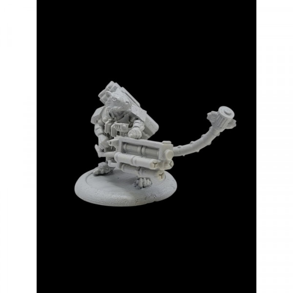 Phileskaven a quitté sa horde de Skaven pour se mettre au service de l'unité MERC, armé de son pulvérisateur ionic et de sa queue fléau d'arme font de lui un redoutable adversaire. Echelle : 35mm. Moulage : en résine