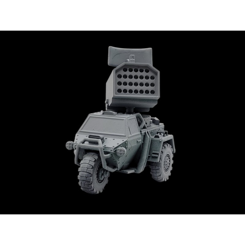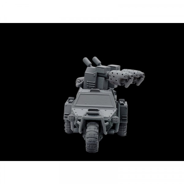 Les Piranhas sont de petits véhicules se déplaçant par trois, ils sont très rapide, et peuvent pénétrer les lignes ennemies faciles, ces véhicules sont parfait pour faire de la reconnaissance. Ce set inclus 3 Piranhas, un type mitrailleuse, un type lance-missile et un type lance flamme. Echelle : 28mm. Moulage : en résine Sculpté : par Greg Girault.