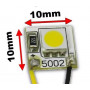 La led CMS est un puce de 5 x 5 mm montée sur une platine de 10x10cm, câblée avec une résistance  et 2x20cm de fil souple.