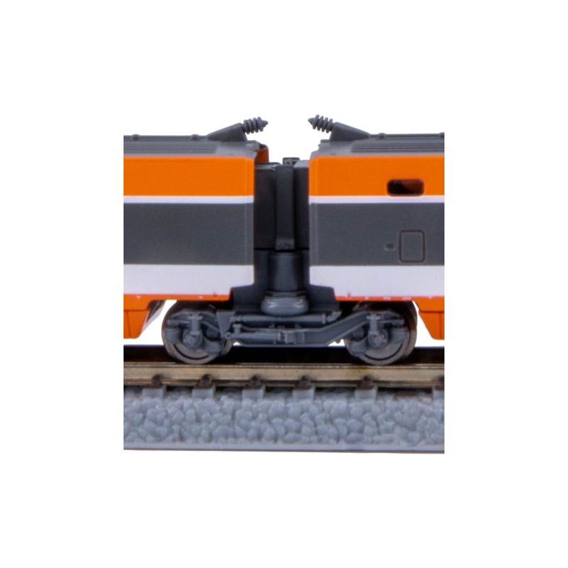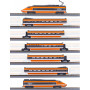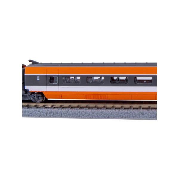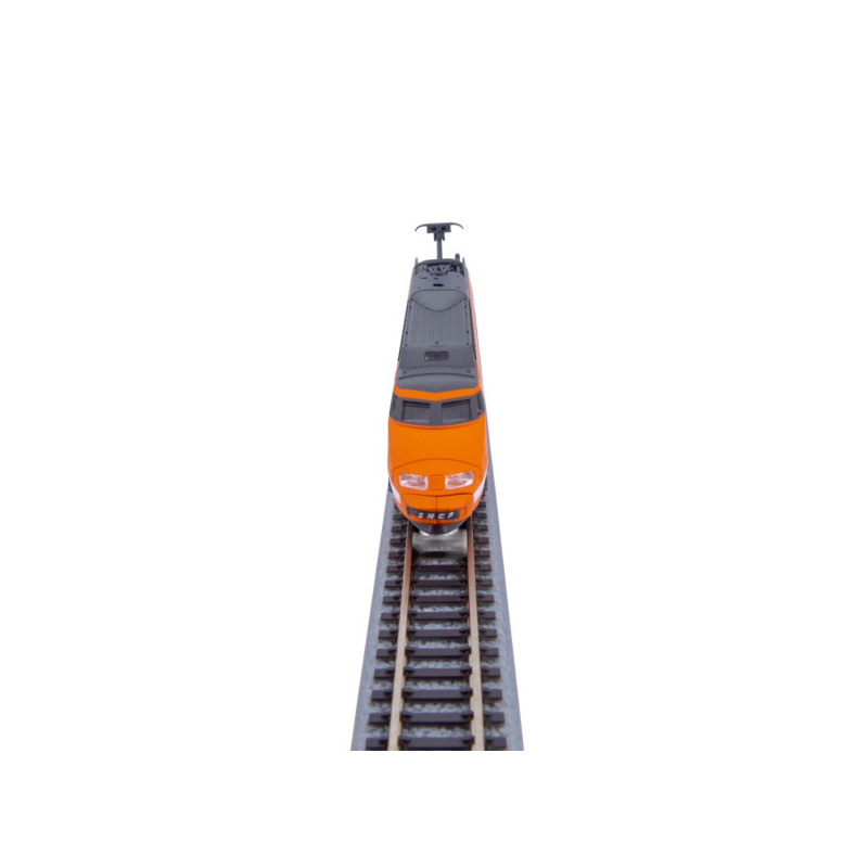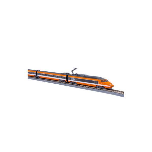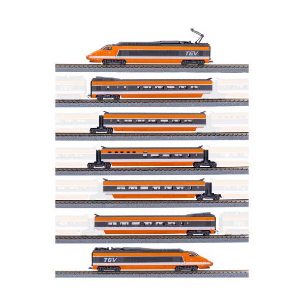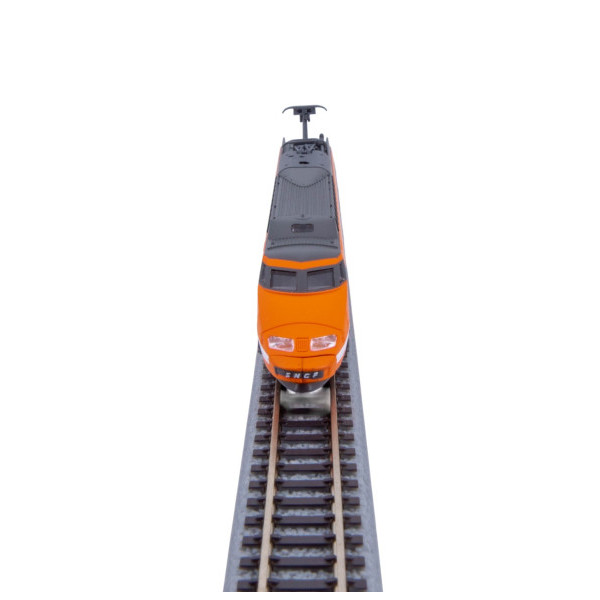 Reproduction fidèle à l'échelle Z (1/220) du célèbre TGV Paris Sud-Est. Livrée Orange d'origine et version analogique.