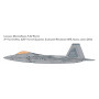 Le Lockheed Martin-Boeing F-22 est un avion de combat de 5ème génération furtif utilisé par l’U.S Air Force. Extrêmement innovant dans sa conception et son design, le «Raptor» est propulsé par deux turboréacteurs à postcombustion Pratt & Whitney F119 dont le mouvement des tuyères permet de générer une poussée vectorielle. La furtivité est obtenue grâce aux formes de la cellule et à l’utilisation de matériaux absorbant les ondes radar. Une grande attention a été apportée à la conception des prises d’air et des tuyères afin de réduire les émissions de chaleur et sonores. Le système d’armement air-air et air-surface est installé dans des soutes à l’intérieur du fuselage pour minimiser la réfl ectivité radar. L’avionique est extrêmement avancée et peut détecter, suivre et engager de nombreuses cibles même à longue distance.