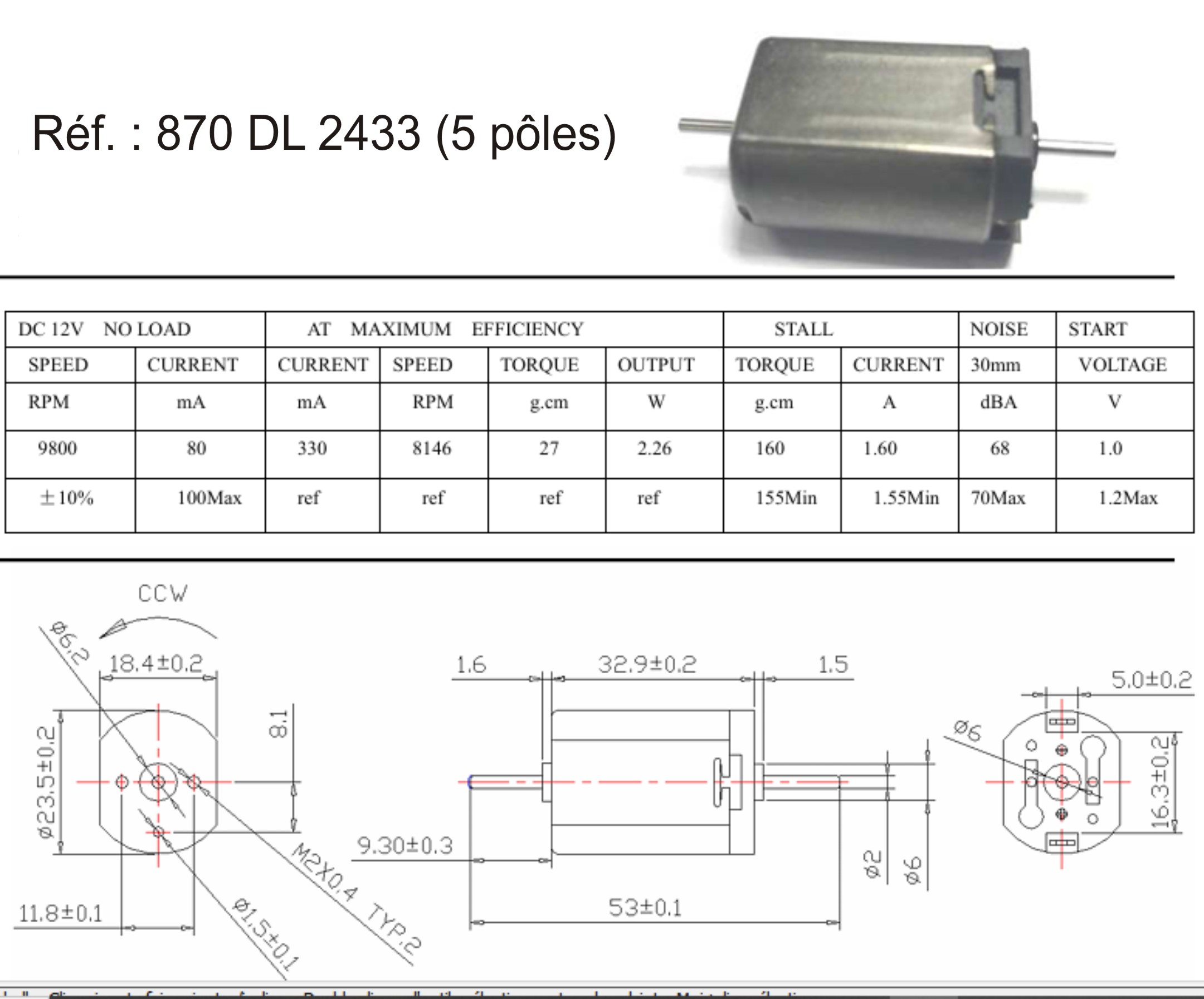 10Longueur 32,9mm Largeur 23,5mm 5 pôles 12V continus 9800 tr/m Axe 2mm