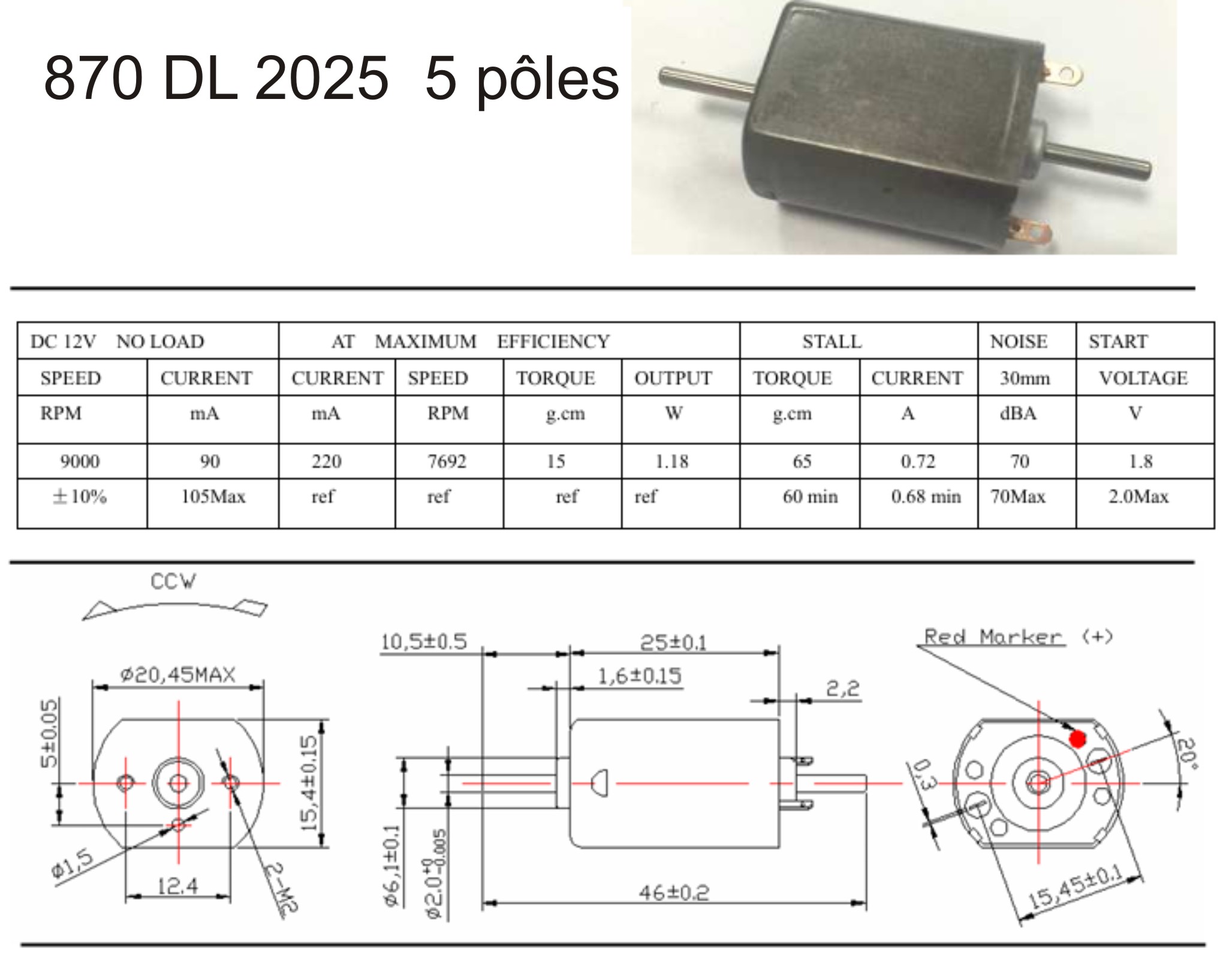 Moteur 5 pôles 20x25mm 5 pôles 12V continus 9000 Tr/m Axe 2mm