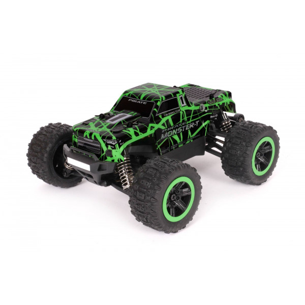 Robuste châssis, conception éprouvée, amortisseurs hydrauliques et pneus polyvalents multi-surfaces permettent au Pirate Monster-T d’évoluer aisément à haute vitesse.