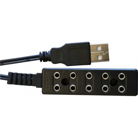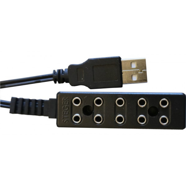 1 répartiteur 5 voies avec câble et prise USB - Adapté aux fiches simples à trou transversal ou aux fiches doubles avec un espacement de 8 mm